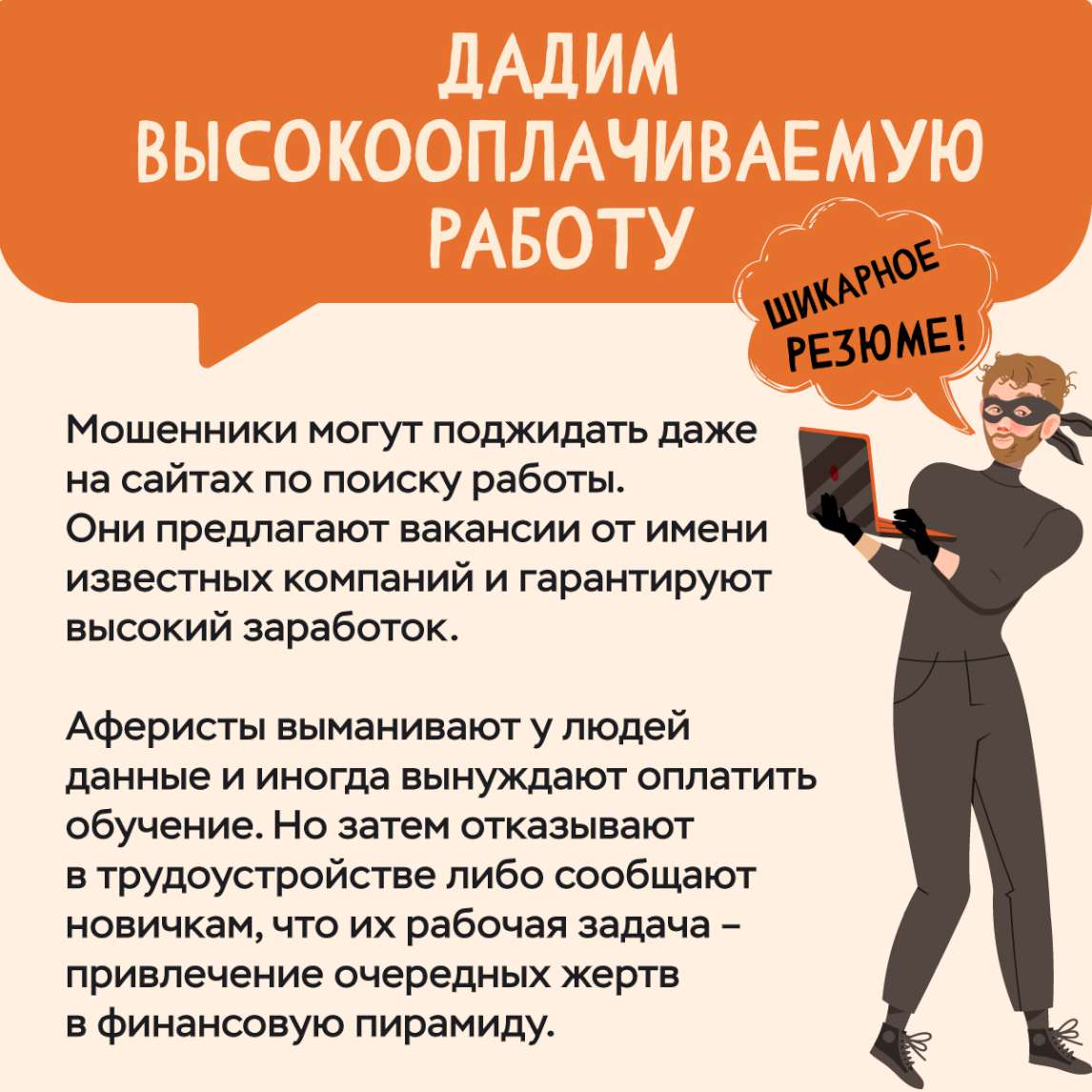 Методические рекомендации «доведение в трудовых коллективах основных мошеннических схем» Стремительное внедрение в повседневную жизнь информационно-коммуникационных технологий, в том числе различных сервисов удаленного доступа, за последние годы, привело к существенному росту зарегистрированных кибермошенничеств, как на территории региона так и по стране в целом. Значительная часть таких преступлений совершается лицами, владеющими передовыми методами «социальной инженерии». Как правило, схемы хищений выглядят следующим образом: Способ Жертве звонят через мессенджер «Вотцап, Вайбер и т.д.» Мошенники представляясь сотрудниками службы безопасности банка звонят клиенту и сообщают, что необходимо произвести замену номера прикрепленного к лицевому счету, чтобы предотвратить мошеннические действия. Для этого предлагается установить на мобильный телефон приложения «RustDesk» и «Zoom». Приложения «RustDesk» и «Zoom» позволяют мошенникам дистанционно управлять мобильным телефоном жертвы, и открывать приложения «Онлайн банка». При вводе пароля в приложении «Онлайн банка» у жертвы производятся списания ВСЕХ денежных средств. Сотрудники банков не звонят клиентам через мессенджеры «Вотцап», «Вайбер» «Телеграм» и не предлагают скачивать различные приложения и программы. Способ хищения денежных средств с использованием приложения-сервиса «BlaBlaCar, АВИТО, ЮЛА и т.д.» При совершении преступления, злоумышленники используют официальный сайт https://www.blablacar.ru (приложения смартфон на Android, IOS), в котором создают аккаунт несуществующего лица (фейковый), предлагающего услуги перевозки пассажиров, где указывают маршрут передвижения. При появлении клиента на указанное направление и уточнение времени и условий поездки, злоумышленник под различными предлогами, предлагает уйти из официального сайта на общение в мессенджеры (Вотцап, Вайбер), в которых клиенту предлагается оплатить поездку, якобы на официальном сайте. После получения согласия клиента, ему по средством мессенжера, поступает ссылка на поддельный (фишинговый) сайт, при переходе по которой, открывается «окно» оплаты внешне схожим с официальным сайтом, где злоумышленник предлагает внести реквизиты банковской карты для оплаты поездки. После ввода реквизитов происходит списание денежных средств, а «фейковый» аккаунт удаляется. Не переходите по ссылкам и не покидайте официальные сайты приложений, чтобы не стать жертвой мошенников. Способ хищения денежных средств под предлогом приобретения билетов в театр (кинотеатр) При совершении преступления, злоумышленники используют сайт знакомств «Тиндер», с помощью которого, знакомятся с молодыми людьми. Далее, под различными предлогами, злоумышленник предлагает перейти для дальнейшего общения в мессенджер «Телеграмм», где предлагает потерпевшему пойти в театр, кино или на концерт. После получения согласия, потерпевшему по средством мессенжера, поступает ссылка на поддельный (фишинговый) сайт, при переходе по которой, открывается «окно» оплаты внешне схожим с официальным сайтом билетных касс, где потерпевший вносит реквизиты банковской карты для оплаты. После ввода реквизитов происходит списание денежных средств, а «фейковый» аккаунт удаляется. S. Способ Жертву обвиняют в госизмене за денежные переводы в пользу ВСУ, либо звонки от сот